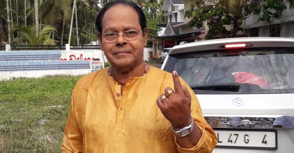 വോട്ടു ചെയ്തതിനു ശേഷം ഇന്നസെന്റ്. ഫയൽ ചിത്രം