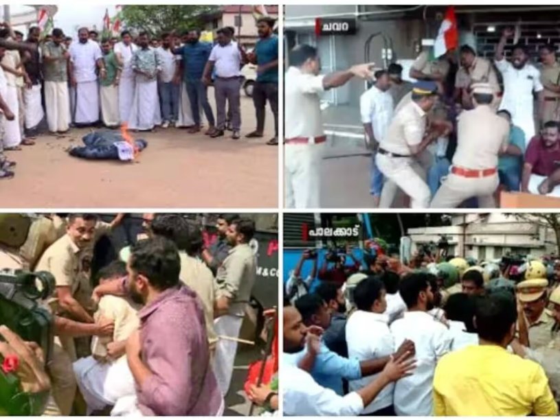 യൂത്ത് കോൺഗ്രസ് സംസ്ഥാന പ്രസിഡന്റ് രാഹുൽ മാങ്കൂട്ടത്തിലിനെ പൊലീസ് അറസ്റ്റ് ചെയ്തതിൽ പ്രതിഷേധിച്ച് യൂത്ത് കോൺഗ്രസ് പ്രവർത്തകർ വിവിധ സ്ഥലങ്ങളിൽ നടത്തിയ പ്രകടനം