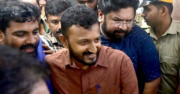 പൊലീസ് അറസ്റ്റ് ചെയ്ത യൂത്ത് കോൺഗ്രസ് അധ്യക്ഷൻ രാഹുൽ മാങ്കൂട്ടത്തിലിനെ വൈദ്യ പരിശോധനയ്ക്കായി തിരുവനന്തപുരം ജനറൽ ആശുപത്രിയിൽ എത്തിച്ചപ്പോൾ യൂത്ത് കോൺഗ്രസ് നേതാക്കളായ സുധീർഷാ പാലോട്, കെ.എസ്. ശബരിനാഥൻ തുടങ്ങിയവർ സമീപം.