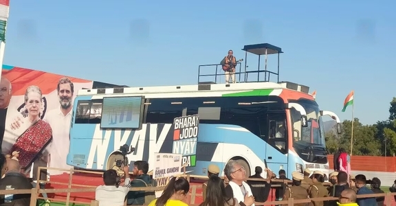 ഭാരത് ജോഡോ ന്യായ് യാത്രയ്ക്കായി സജ്ജീകരിച്ച ബസ്
