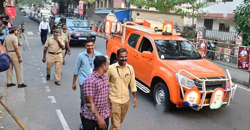 പ്രധാനമന്ത്രി നരേന്ദ്ര മോദിയുടെ റോഡ് ഷോയ്ക്ക് മുന്നോടിയായി ഹോസ്പിറ്റൽ റോഡിൽ പൊലീസ് സുരക്ഷാ പരിശോധന നടത്തിയപ്പോൾ.