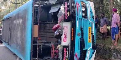 കൊല്ലത്ത് സ്വകാര്യ ബസ് മറിഞ്ഞ് അപകടം; 15 പേർക്ക് പരുക്കേറ്റു