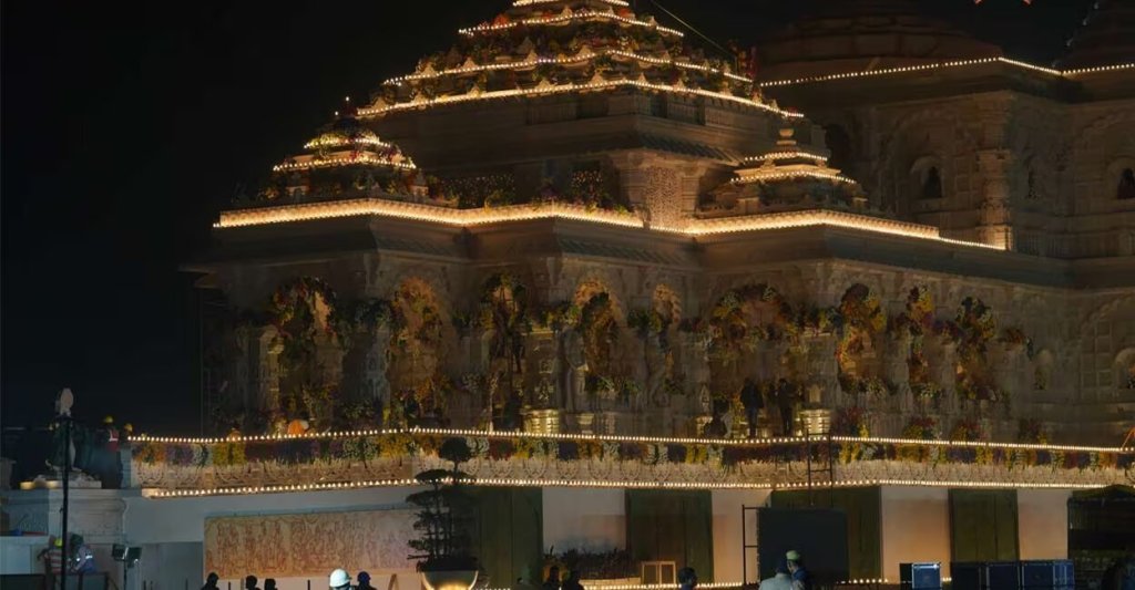 ലക്നൗ∙ രാമക്ഷേത്രത്തിലെ പ്രാണപ്രതിഷ്ഠാ ചടങ്ങിന് മണിക്കൂറുകൾ മാത്രം ബാക്കിനിൽക്കെ ഉത്സവാന്തരീക്ഷത്തിൽ അയോധ്യനഗരം. നഗരം മുഴുവൻ ദീപാലംകൃതമാണ്. ഭക്തരും ടൂറിസ്റ്റുകളും ഉൾപ്പെടെ നിരവധിപ്പേരാണ് അയോധ്യയിലേക്ക് ഒഴുകുന്നത്. പാട്ടുകളും നൃത്തങ്ങളുമായി ആളുകൾ ആഘോഷിക്കുന്ന കാഴ്ചയാണ് വഴിയിലുടനീളം കാണുന്നത്. എല്ലാ ക്ഷേത്രങ്ങളിലും പ്രഭാഷണ പരമ്പരകളും അന്നദാനവും അടക്കമുള്ള ചടങ്ങുകളുണ്ട്.