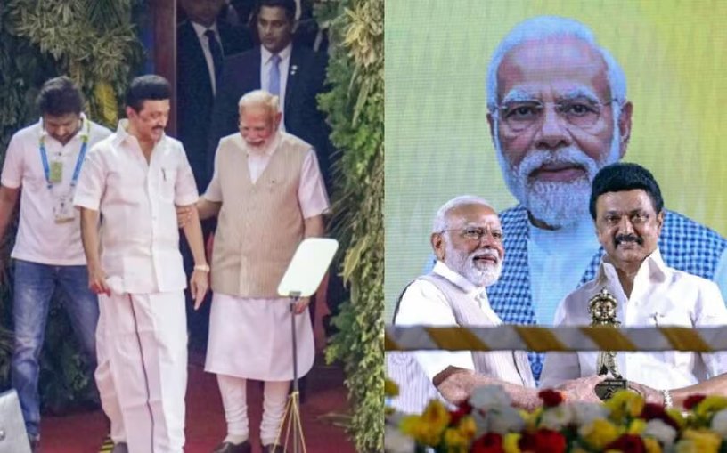 വേദിയിലേക്ക് പ്രധാനമന്ത്രി നരേന്ദ്ര മോദിയും മുഖ്യമന്ത്രി എംകെ സ്റ്റാലിനും സംസാരിച്ചുകൊണ്ട് നീങ്ങുന്നത് ദൃശ്യങ്ങളിൽ വ്യക്തമാണ്. തൊട്ടുപിന്നിലായി കായികവകുപ്പ് മന്ത്രി ഉദയനിധി സ്റ്റാലിനുമുണ്ടായിരുന്നു. പെട്ടെന്ന് കാൽ വഴുതിയതിനെത്തുടര്ന്ന് സ്റ്റാലിന് ബാലൻസ് നഷ്ടപ്പെട്ടു. ഒപ്പമുണ്ടായിരുന്ന പ്രധാനമന്ത്രി ഉടനെ തന്നെ സ്റ്റാലിന്റെ ഇടതുകൈയിൽ പിടിച്ച് വീഴാതെ താങ്ങി നിർത്തുന്നതാണ് വീഡിയോയിലുള്ളത്.