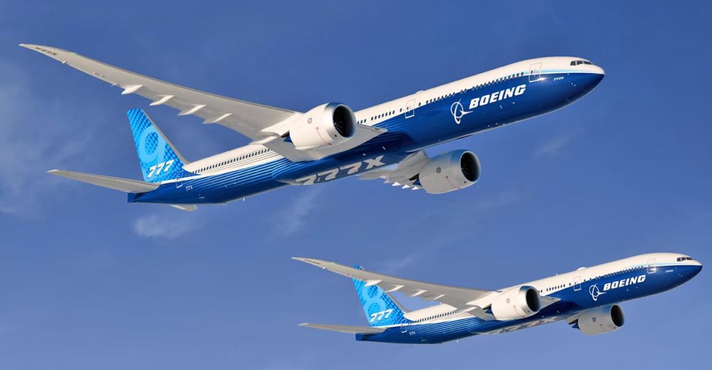വലിയ വിമാനങ്ങളില് ഏറ്റവും വില്പനയുള്ള മോഡലാണ് ബോയിങ് 777. 1995 മുതല് ആകാശം കീഴടക്കി തുടങ്ങിയ 777ന്റെ പിന്ഗാമിയായാണ് 777എക്സിനെ 2013ല് ബോയിങ് അവതരിപ്പിക്കുന്നത്. ബോയിങ് 777എക്സില് 777-9, 777-8 എന്നിങ്ങനെ രണ്ടു മോഡലുകളും കമ്പനി അവതരിപ്പിച്ചിരുന്നു. ഇതില് 777-8ല് 384 യാത്രികരെ കൊണ്ടുപോകാനാവും. നിര്ത്താതെ 8,745 നോട്ടിക്കല് മൈല്(16,196 കിലോമീറ്റര് വരെ) പറക്കാനും ഈ ബോയിങ് വിമാനത്തിനാവും. 71 മീറ്ററാണ് നീളം. കൂടുതല് വലിയ മോഡലാണ് 777-9. ഇതില് 426 യാത്രികരെയാണ് കൊണ്ടുപോകാനാവുക. 76 മീറ്റര് നീളമുള്ള ഈ വിമാനത്തിന് 7,285 നോട്ടിക്കല് മൈല്(13,492 കിലോമീറ്റര്) വരെയാണ് റേഞ്ച്.