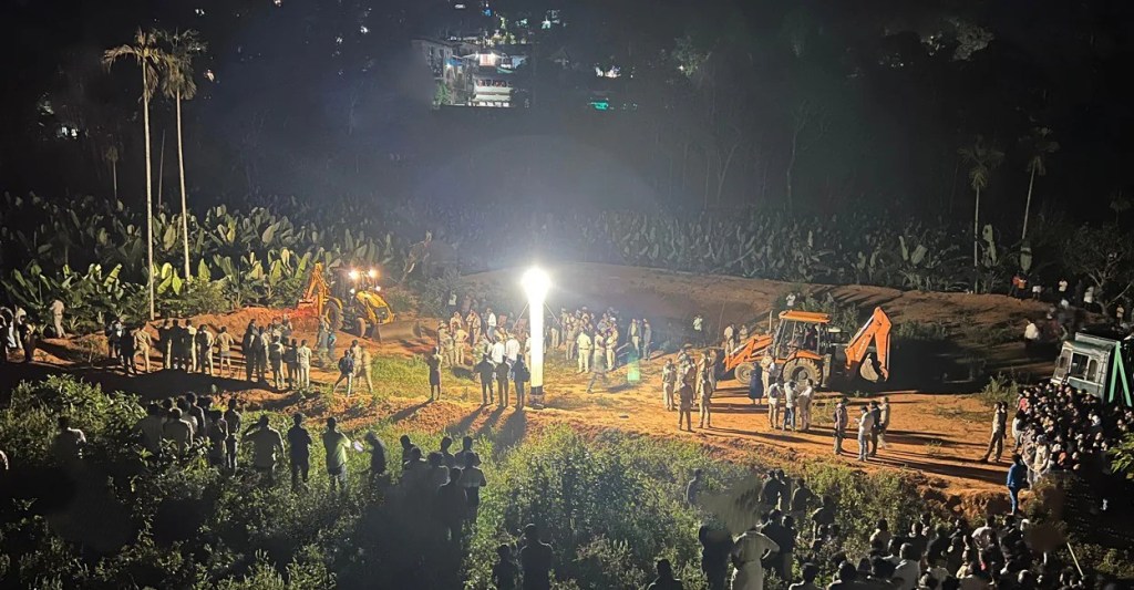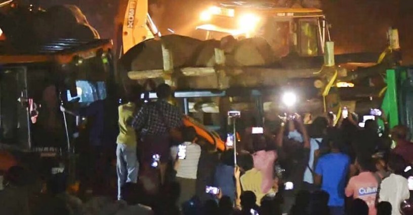 കാട്ടാനയെ മയക്കുവെടിവച്ചതിനു പിന്നാലെ പിടികൂടാനുള്ള ശ്രമം തുടരുമ്പോള്.