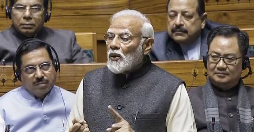 പ്രധാനമന്ത്രി നരേന്ദ്ര മോദി പാർലമെന്റിൽ സംസാരിക്കുന്നു (PTI Photo)