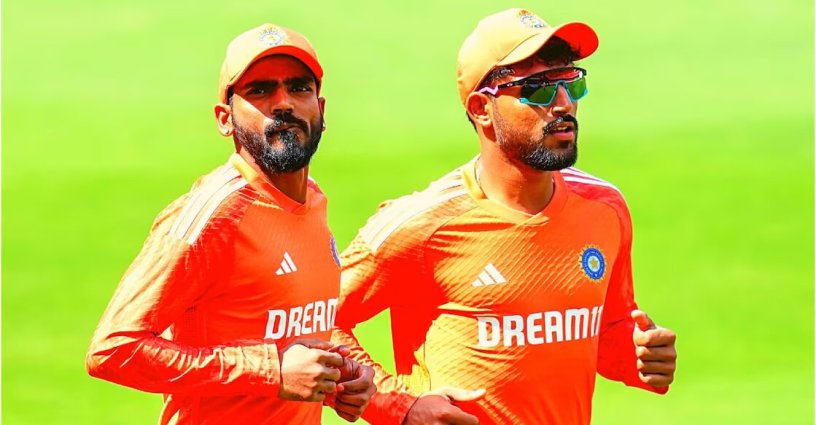 കെ.എസ്.ഭരത്തും (ഇടത്) ധ്രുവ് ജുറലും പരിശീലനത്തിനിടെ. (PTI Photo)