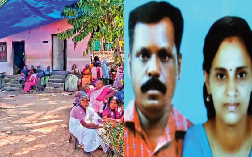 ദമ്പതിമാരുടെ മരണമറിഞ്ഞ് വിളക്കുടി മീനംകോട്ടെ വീട്ടിലെത്തിയവർ, മരിച്ച വിജേഷും രാജിയും.