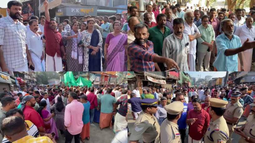 യുവാവിനെ കാട്ടാന ചവിട്ടിക്കൊന്നതിനു പിന്നാലെ മാനന്തവാടിയിൽ പ്രതിഷേധിക്കുന്ന നാട്ടുകാർ.