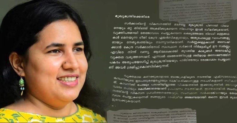 തിരുവനന്തപുരം∙ മുഖ്യമന്ത്രിയുടെ മകൾ വീണയുടെ എക്സാലോജിക് കമ്പനിയെ ന്യായീകരിച്ചു സിപിഎം രേഖ. സിപിഎം സംസ്ഥാന സെക്രട്ടറിയായിരുന്ന കോടിയേരി ബാലകൃഷ്ണന്റെ മകൻ ബിനീഷ് കോടിയേരിക്കെതിരെ കേന്ദ്ര ഏജൻസികൾ കേസെടുത്തപ്പോൾ പാർട്ടി രേഖാമൂലം ഇത്തരത്തിൽ വിശദീകരണം നടത്തിയിരുന്നില്ല. കേസ് കേസിന്റെ വഴിക്കുപോകുമെന്നായിരുന്നു വിശദീകരണം. നേതാക്കളുടെ കുടുംബത്തിനുനേരെ ഉയർന്ന ആരോപണം രേഖയിലൂടെ കീഴ്ഘടകങ്ങളിൽ വിശദീകരിക്കുന്നത് അപൂർവം. ലോക്സഭാ തിരഞ്ഞെടുപ്പിനു മുന്നോടിയായി കീഴ്ഘടകങ്ങൾക്കു നൽകിയ രേഖയിലാണ് എക്സാലോജിക്കിനെ ന്യായീകരിക്കുന്നത്.