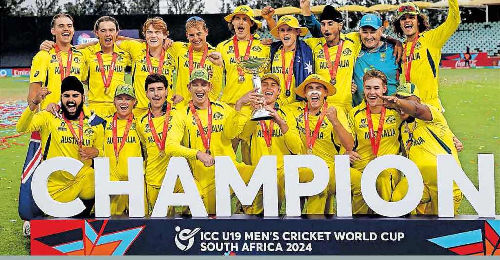 അണ്ടർ 19 ലോകകപ്പിൽ ഓസ്ട്രേലിയ നാലാം തവണ ജേതാക്കളായപ്പോൾ ആറാം കിരീടമെന്ന ഇന്ത്യൻ സ്വപ്നം പൊലിഞ്ഞു. പുരുഷ വിഭാഗം ഐസിസി ക്രിക്കറ്റ് ടൂർണമെന്റുകളിൽ 2 വർഷത്തിനിടയില് ഓസീസിന്റെ മൂന്നാം കിരീടനേട്ടമാണിത്. കഴിഞ്ഞവർഷത്തെ ലോക ടെസ്റ്റ് ചാംപ്യൻഷിപ് ഫൈനൽ അടക്കം മൂന്നിലും ഓസ്ട്രേലിയ തോൽപിച്ചത് ഇന്ത്യയെ.