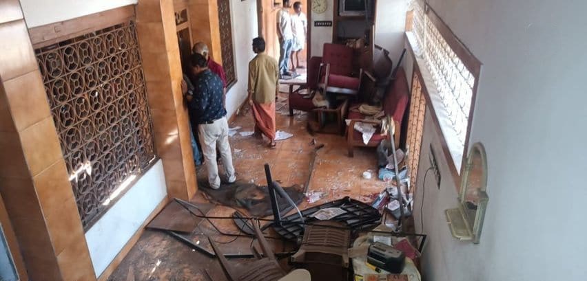 സ്ഫോടനമുണ്ടയതിന് സമീപത്തെ വീട്ടിലെ ഉപകരണങ്ങൾ തകർന്ന നിലയിൽ