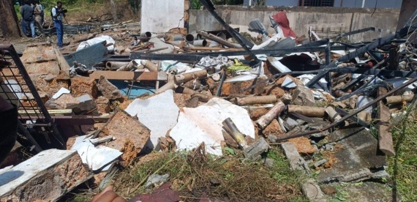 സ്ഫോടനത്തിൽ തകർന്ന കെട്ടിടത്തിൻറെ ഭാഗങ്ങൾ.