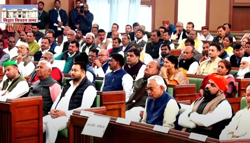 ബിഹാർ നിയമസഭയിലെത്തിയ മുഖ്യമന്ത്രി നിതീഷ് കുമാറും തേജസ്വി യാദവും