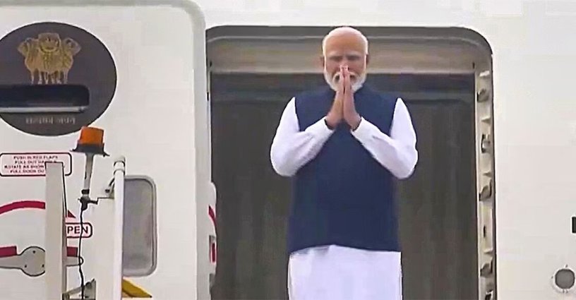 യുഎഇയിലേക്കുള്ള യാത്രയ്ക്കായി പ്രധാനമന്ത്രി നരേന്ദ്ര മോദി പുറപ്പെട്ടപ്പോൾ. (PTI Photo)