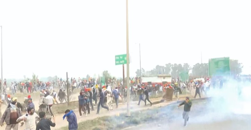 പഞ്ചാബ്–ഹരിയാന അതിർത്തിയായ ശംഭുവിൽ കർഷകരെ പിരിച്ചുവിടാൻ പൊലീസ് കണ്ണീർവാതകം പ്രയോഗിച്ചപ്പോൾ (പിടിഐ ചിത്രം)