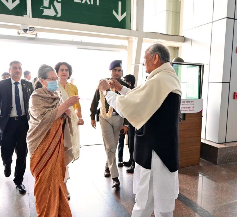 സോണിയയെ ജയ്പുരിൽ സ്വീകരിക്കുന്ന അശോക് ഗഹ്ലോത്