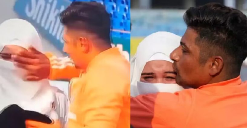 സർഫറാസിന്റെ കളി കാണാനെത്തി ഭാര്യ റൊമാന ജാഹുറും, ആനന്ദക്കണ്ണീർ; കെട്ടിപ്പിടിച്ച് ആശ്വസിപ്പിച്ച് താരം