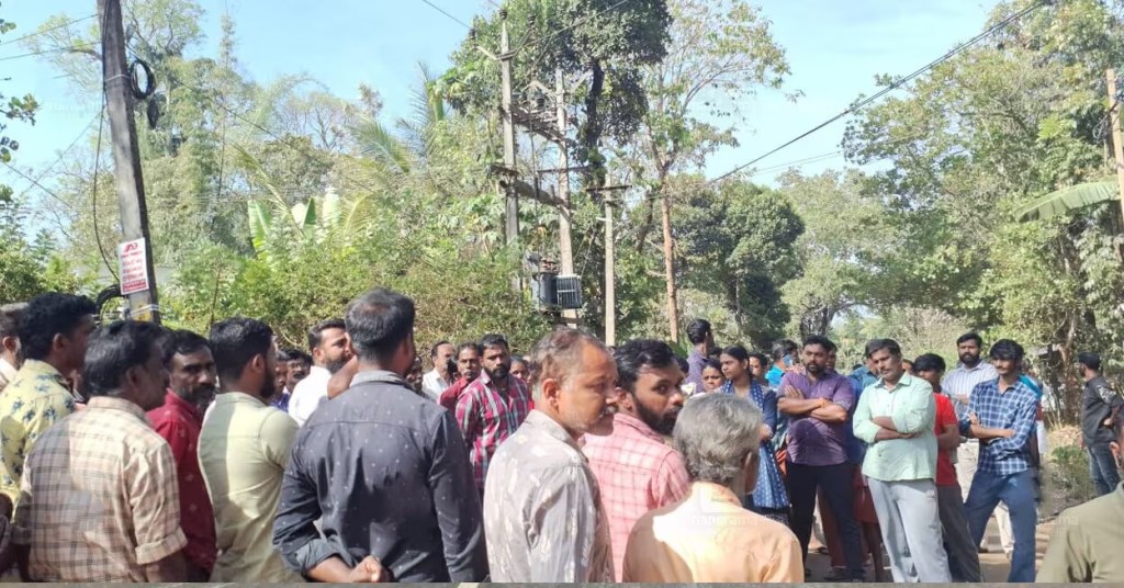 കാട്ടാനയുടെ ആക്രമണത്തിൽ കൊല്ലപ്പെട്ട പോളിന്റെ വീടിന് പരിസരത്തു തടിച്ചുകൂടിയ ജനക്കൂട്ടം