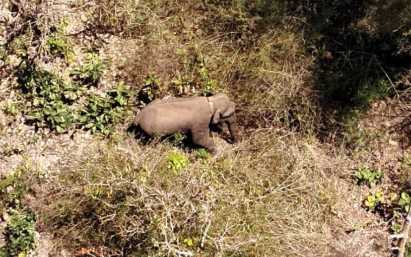 മയക്കുവെടിവെക്കാനുള്ള ദൗത്യത്തിനിടെ കാട്ടിലൂടെ നടന്നുപോകുന്ന ബേലൂർ മഖ്ന. വനംവകുപ്പിന്റെ ഡ്രോൺ ക്യാമറാ ദൃശ്യം