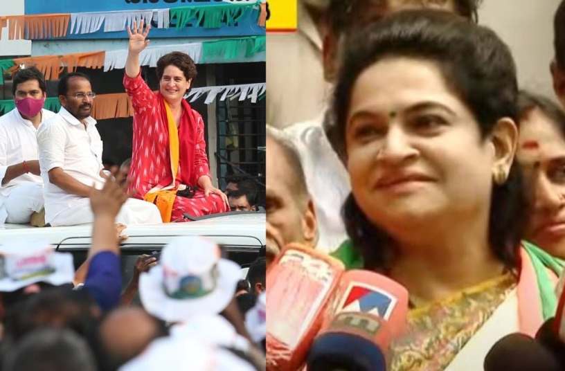 2021-ൽ പ്രിയങ്ക ഗാന്ധി തൃശ്ശൂർ പ്രചാരണത്തിനെത്തിയപ്പോൾ, പത്മജ വേണുഗോപാൽ