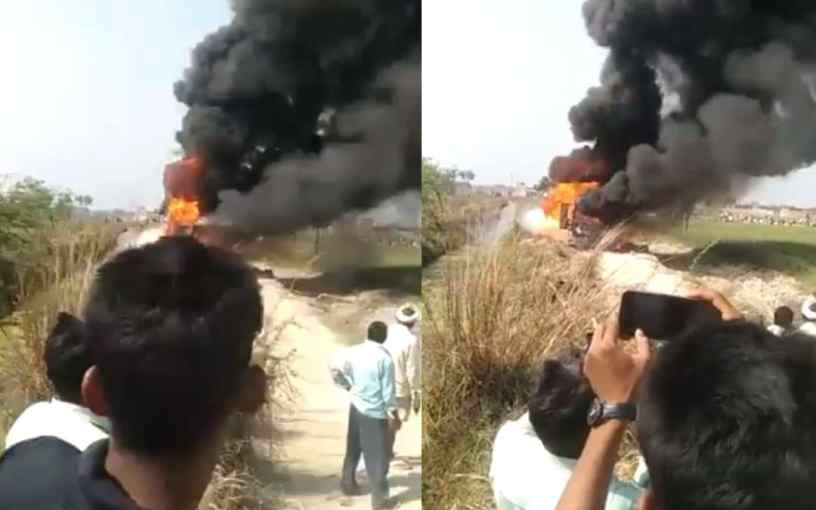 കത്തിയ ബസിന്റെ ദൃശ്യം | Photo: Screen grab/ X: Naval Kant Sinha