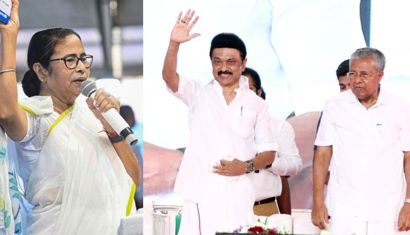 മമതാ ബാനർജി, എം.കെ സ്റ്റാലിൻ, പിണറായി വിജയൻ | Photo: PTI, Jeevan TV News