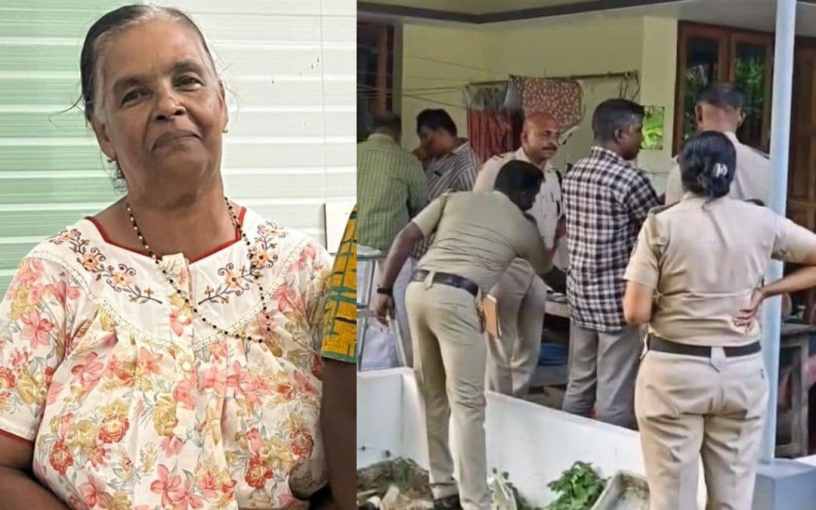 കൊല്ലപ്പെട്ട സാറാമ്മ. സാറാമ്മയുടെ വീട്ടിൽ പോലീസ് പരിശോധന നടത്തുന്നു. Photo: Special Arrangement