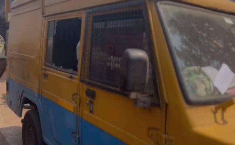 പണവുമായി വന്ന വാഹനത്തിന്റെ ചില്ല് തകർത്തനിലയിൽ