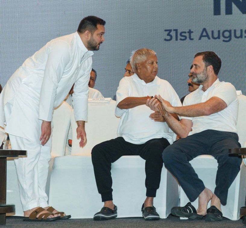 തേജസ്വി യാദവ്, ലാലു പ്രസാദ് യാദവ്, രാഹുൽ ഗാന്ധി | Photo: ANI