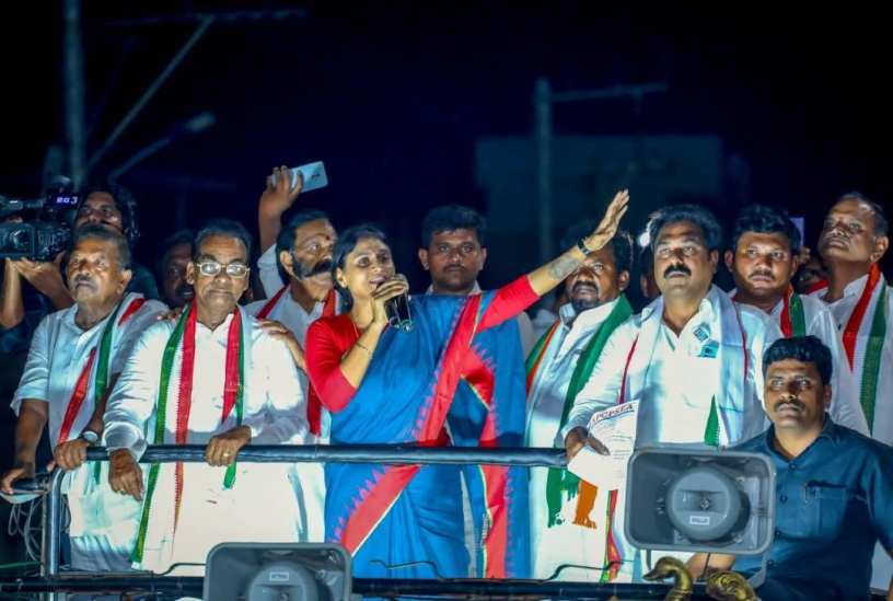 വൈ.എസ്.ശർമിള ആന്ധ്രയിലെ ഒരു പൊതുപരിപാടിയിൽ |ഫോട്ടോ:ANI
