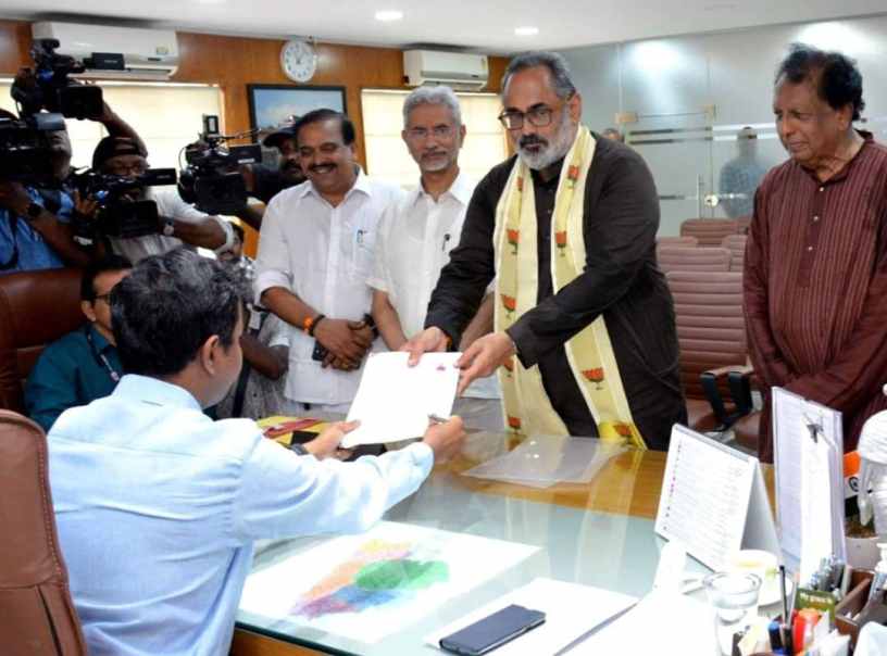 രാജീവ് ചന്ദ്രശേഖർ നാമനിർദേശ പത്രിക സമർപ്പിക്കുന്നു |ഫോട്ടോ:ANI