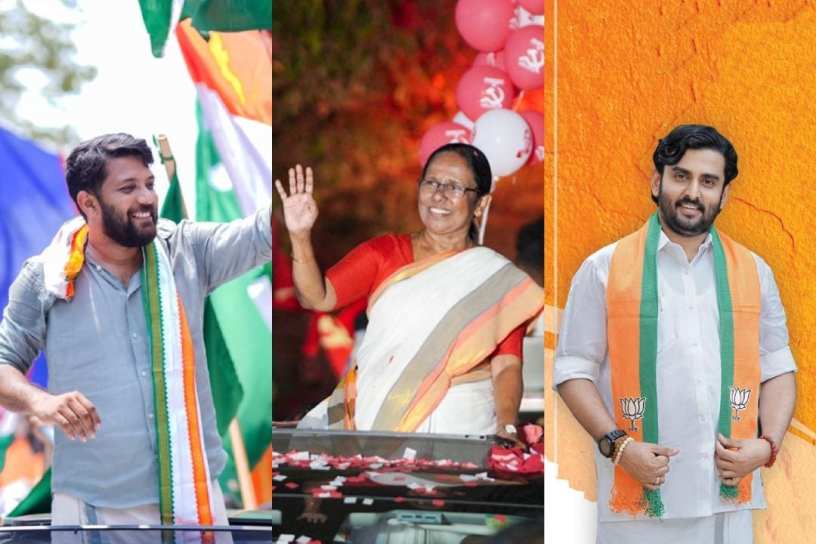 വടകര ലോക്സഭാ മണ്ഡലത്തിലെ സ്ഥാനാർഥികളായ ഷാഫി പറമ്പിൽ (യു.ഡി.എഫ്), കെ.കെ. ശൈലജ (എൽ.ഡി.എഫ്), പ്രഫുൽ കൃഷ്ണ (എൻ.ഡി.എ) | Photos: facebook.com/shafiparambilmla, facebook.com/kkshailaja, facebook.com/praphulkrishnanofficial