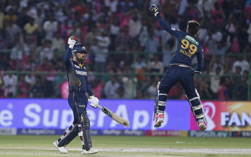 12 പന്തില് ജയിക്കാന് 35 റണ്സ് വേണമെന്നിരിക്കേ കുല്ദീപ് സെന് എറിഞ്ഞ 19-ാം ഓവറില് 20 റണ്സും ആവേശ് ഖാന് എറിഞ്ഞ അവസാന ഓവറില് 17 റണ്സും അടിച്ചെടുത്ത രാഹുല് തെവാട്ടിയ – റാഷിദ് ഖാന് സഖ്യമാണ് ഗുജറാത്തിന് ആവേശ ജയം സമ്മാനിച്ചത്. 11 പന്തില് നിന്ന് 22 റണ്സെടുത്ത തെവാട്ടിയ അവസാന ഓവറില് റണ്ണൗട്ടായെങ്കിലും 11 പന്തില് നിന്ന് 24 റണ്സെടുത്ത റാഷിദ് അവസാന പന്തില് ഫോറടിച്ച് ടീമിനെ വിജയത്തിലെത്തിക്കുകയായിരുന്നു.