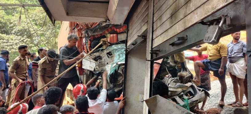 ഇറക്കത്തില് നിയന്ത്രണം നഷ്ടമായ ലോറി കടയിലേക്ക് ഇടിച്ചുകയറുകയായിരുന്നു. ഇതേസമയം കടയിലുണ്ടായിരുന്നവര് ലോറി വരുന്നതുകണ്ട് ഓടിരക്ഷപ്പെട്ടു. ഡ്രൈവറെ രണ്ടു മണിക്കൂര് നീണ്ട പരിശ്രമത്തിനൊടുവിലാണ് പുറത്തെടുത്തത്.