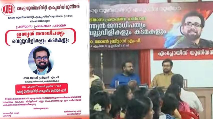 അതേസമയം പെരുമാറ്റച്ചട്ടങ്ങള് പാലിച്ചാണ് യോഗം ചേര്ന്നതെന്നും നടപടികളെ ന്യായീകരിച്ചും തിരഞ്ഞെടുപ്പ് കമ്മിഷന് മറുപടി നല്കാന് രജിസ്ട്രാറുടെമേല് യോഗം സംഘടിപ്പിച്ചവര് സമ്മര്ദം ചെലുത്തിയെന്നാണ് വിവരം. എന്നാല് യോഗം തടയാന് ഉത്തരവിട്ട വൈസ് ചാന്സലറെ ബ്രിട്ടാസ് നടത്തിയ പ്രസംഗത്തില് അധിക്ഷേപിച്ചു സംസാരിച്ചതും തിരഞ്ഞെടുപ്പ് കമ്മീഷനെ അറിയിച്ചിട്ടുണ്ട്.