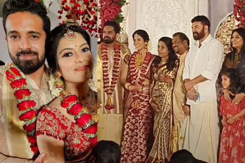 സ്വാതിയും ഭർത്താവും/ മമ്മൂട്ടി കുടുംബസമേതം വിവാഹത്തിനെത്തിയപ്പോൾ | Photo: instagram/ swathi kunjan/ youtube