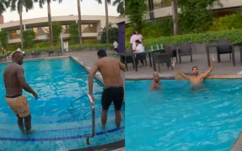കൊല്ക്കത്ത: നീന്തല് മത്സരത്തിനിടെ ആന്ദ്രെ റസലിനെ പ്രാങ്ക് ചെയ്ത് സഹതാരം വെങ്കടേഷ് അയ്യര്. കഴിഞ്ഞദിവസം ഡല്ഹി ക്യാപിറ്റല്സിനെതിരേ നടന്ന മത്സരത്തിന് മുന്നോടിയായി ഇരുവരും നീന്തല്ക്കുളത്തില് കുളിക്കുന്നതിനിടെയാണ് സംഭവം. ഇതിന്റെ വീഡിയോ വെങ്കടേഷ് അയ്യര് സാമൂഹിക മാധ്യമത്തില് പങ്കുവെച്ചു.
