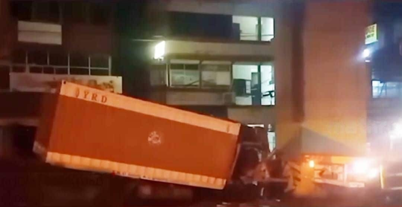 മെട്രോ തൂണിലിടിച്ച ലോറി