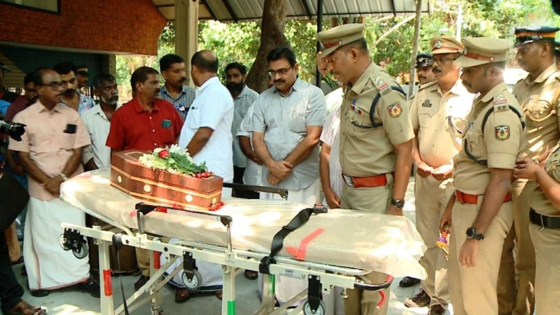 അമ്മ കൊലപ്പെടുത്തിയ നവജാതശിശുവിന് സംസ്കാരത്തിനു മുമ്പ് സല്യൂട്ട് നൽകുന്ന പോലീസ് ഉദ്യോഗസ്ഥൻ. കൊച്ചി മേയർ എം.അനിൽകുമാർ സമീപം
