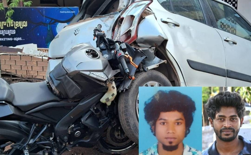 അപകടത്തിന്റെ ദൃശ്യം. ഇൻസെറ്റിൽ മരിച്ച ജോമോൻ, ജോയൽ