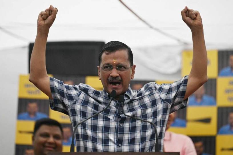 കെജ്രിവാൾ ഡൽഹിയിൽ സംസാരിക്കുന്നു |ഫോട്ടോ:AFP