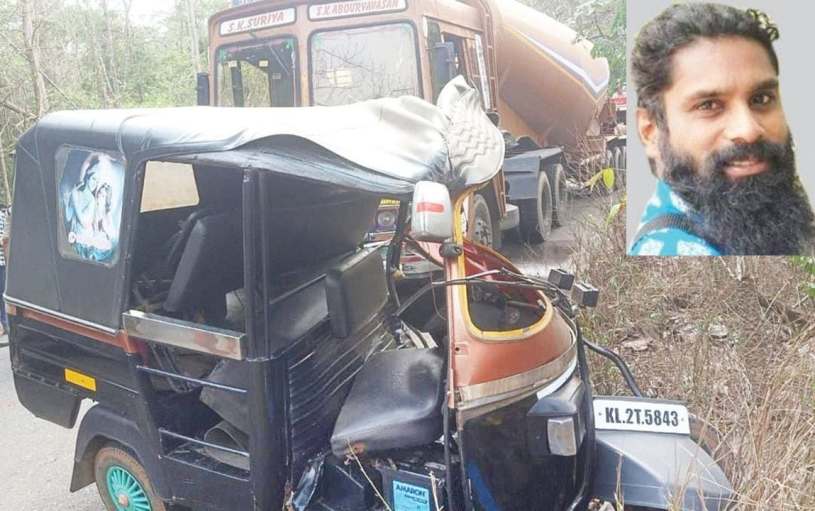 കുളപ്പുള്ളി ഐ.പി.ടി. കോളേജിനുസമീപം കൂട്ടിയിടിച്ച ടാങ്കർ ലോറിയും ഓട്ടോറിക്ഷയും. ഇൻസൈറ്റിൽ രതീഷ് തിരവങ്കൻ