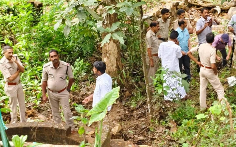 തലയോട്ടി കണ്ടെത്തിയ കിണറും പരിസരവും ചിറ്റാരിക്കാൽ പോലീസ് പരിശോധിക്കുന്നു