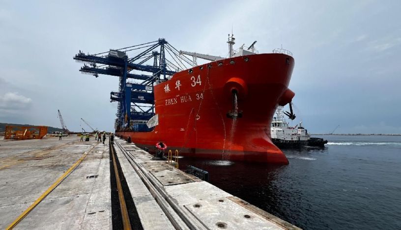 ചൈനയിൽ നിന്ന് ക്രെയിനുകളുമായിയെത്തിയ ഷെൻഹുവാ-34 കപ്പൽ
