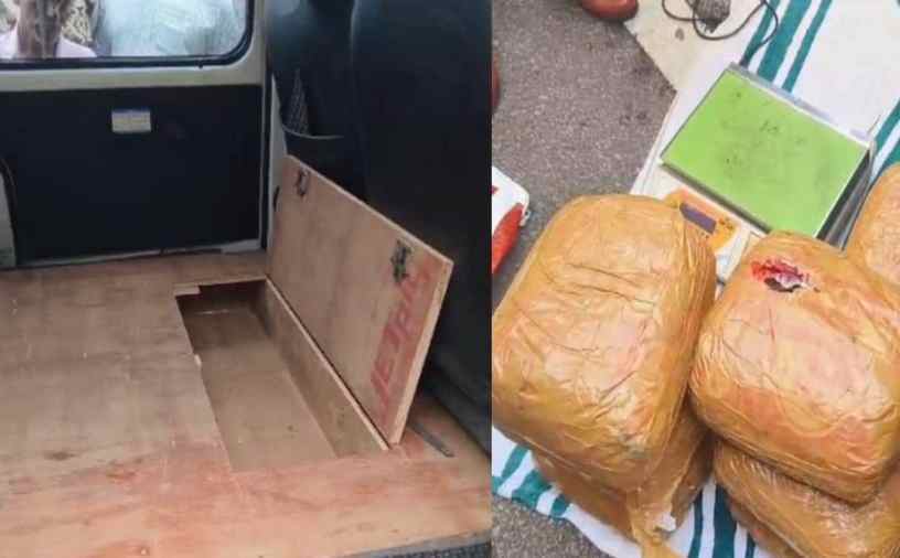 എക്സൈസ് സ്റ്റേറ്റ് എന്ഫോഴ്സ്മെന്റ് സ്ക്വാഡ് നടത്തിയ പരിശോധനയിലാണ് കഞ്ചാവ് കടത്ത് പിടികൂടിയത്. കാറില് പ്ലാറ്റ്ഫോമിനോട് ചേര്ന്ന് രഹസ്യഅറ നിര്മിച്ച് ഇതിനുള്ളിലാണ് കഞ്ചാവ് സൂക്ഷിച്ചിരുന്നത്.