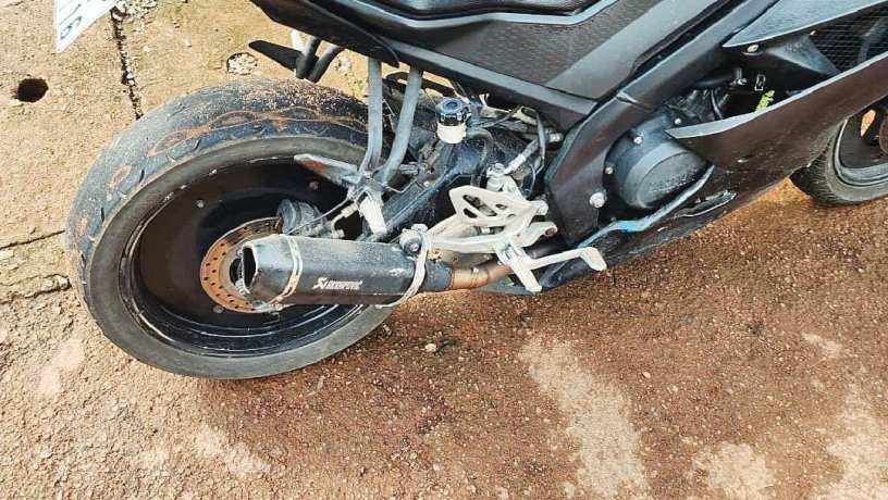 മോട്ടോർ വാഹനവകുപ്പ് പിടികൂടിയ ബൈക്ക്.