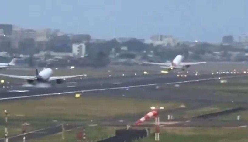 മുംബൈ വിമാനത്താവളത്തിൽ എയർ ഇന്ത്യ വിമാനം ടേക്ക് ഓഫ് ചെയ്യുന്നതിനിടെ ഇൻഡിഗോ വിമാനം റൺവേയിൽ ലാൻഡ് ചെയ്യുന്നു | Photo: ‘X’ @Cric_gal