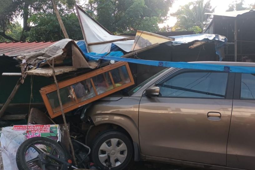 ഞായറാഴ്ച രാവിലെ ആറുമണിയോടെയാണ് അപകടമുണ്ടായത്. പെരിങ്ങോട്ടുകര ഭാഗത്തുനിന്ന് തൃശ്ശൂർ ഭാഗത്തേക്ക് പോകുകയായിരുന്ന കാറാണ് ആൽ സ്റ്റോപ്പിന് സമീപം വളവിൽ തട്ടുകടയിലേക്ക് ഇടിച്ചുകയറിയത്. ഇടിയുടെ ആഘാതത്തിൽ കടയുടെ മുൻഭാഗം പൂർണമായും തകർന്നു. രണ്ട് ഇരുചക്ര വാഹനങ്ങൾക്കും കേടുപറ്റി.